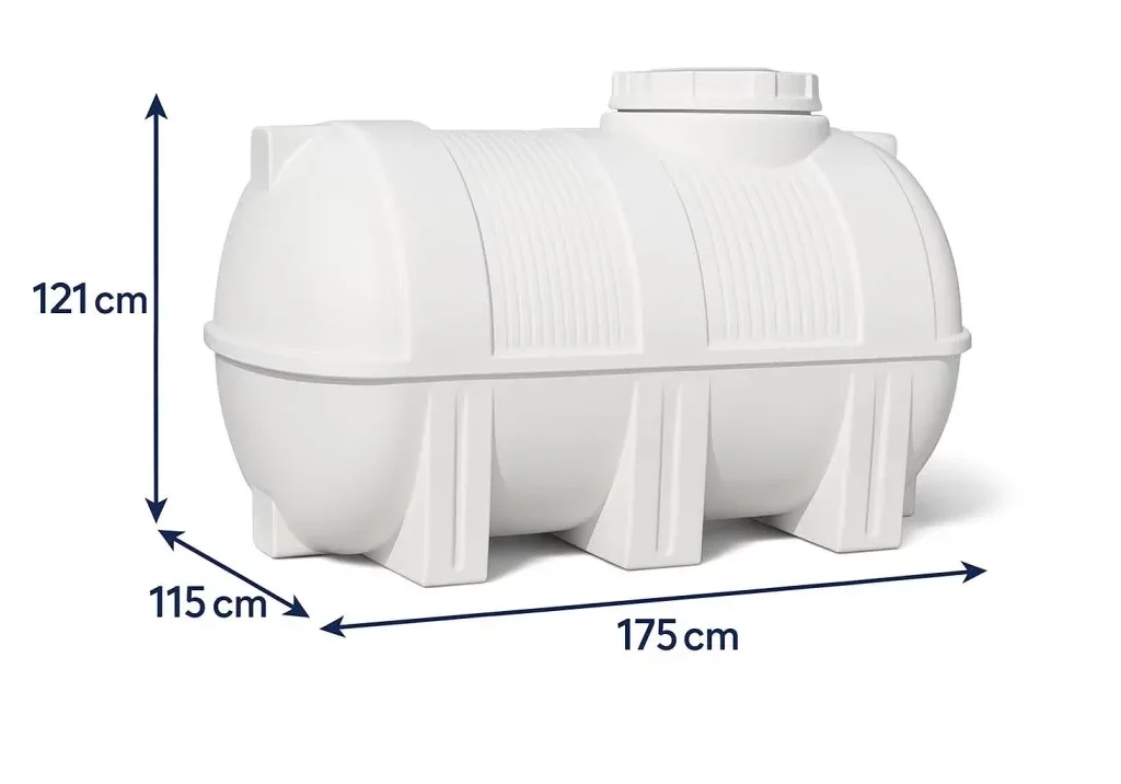 این تانکر ۱۵۰۰ لیتری افقی با ابعاد دقیق ۱۷۵×۱۱۵×۱۲۰ سانتیمتر طراحی شده است.