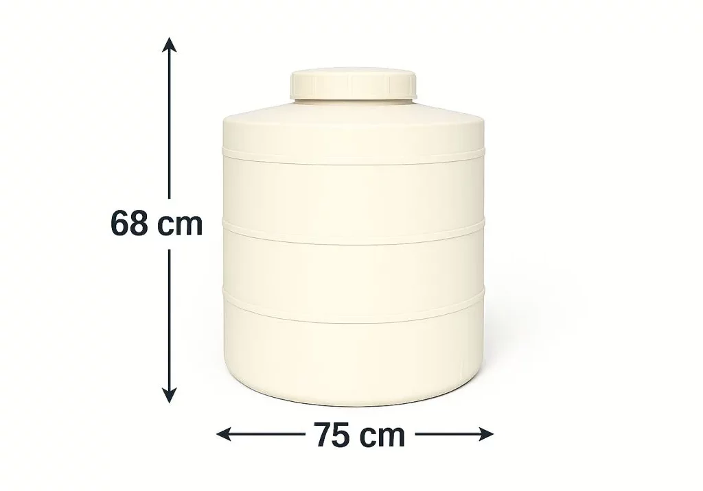ابعاد بهینهی این مدل (قطر ۷۵ سانتیمتر و ارتفاع ۶۸ سانتیمتر) باعث میشود در پشتبامها، بالکنها، موتورخانهها و فضاهای کوچک بهراحتی نصب شود. طراحی عمودی آن علاوه بر صرفهجویی در فضا، ظرفیت مناسبی برای ذخیره آب خانگی فراهم میکند.