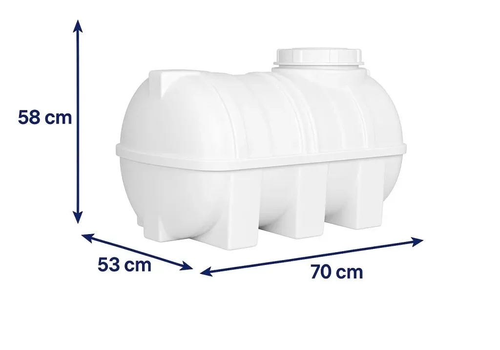 طراحی افقی این مخزن باعث میشود در فضاهایی که ارتفاع کمی دارند یا چیدمان محدود است، بهراحتی نصب شود و بدون ایجاد مزاحمت، نیاز روزانه کاربر را بهطور کامل تأمین کند.